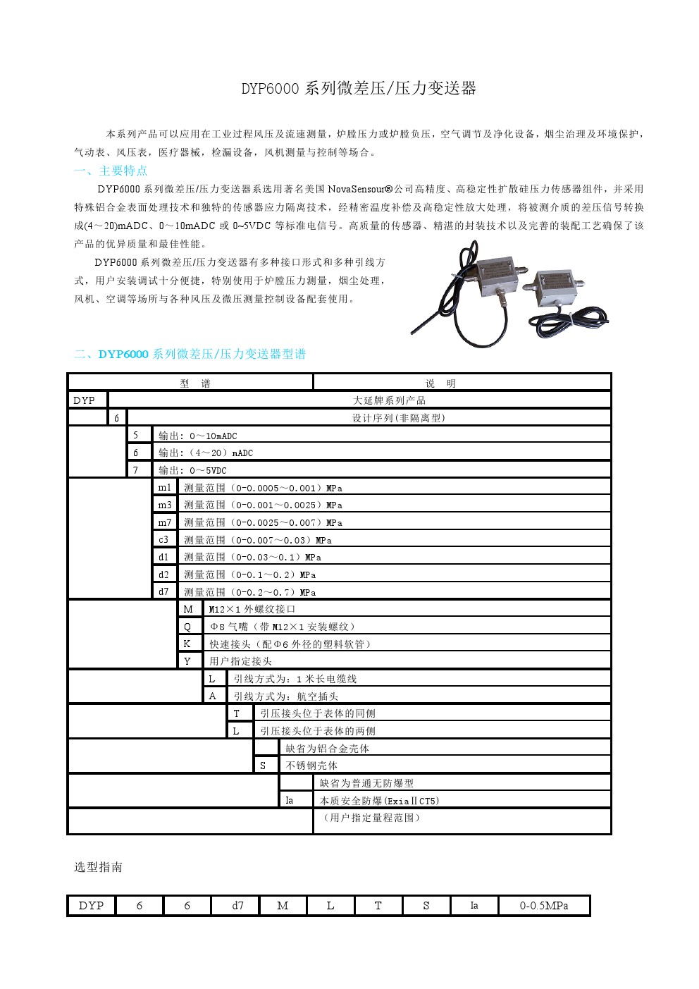 DYP6000系列微差壓壓力變送器