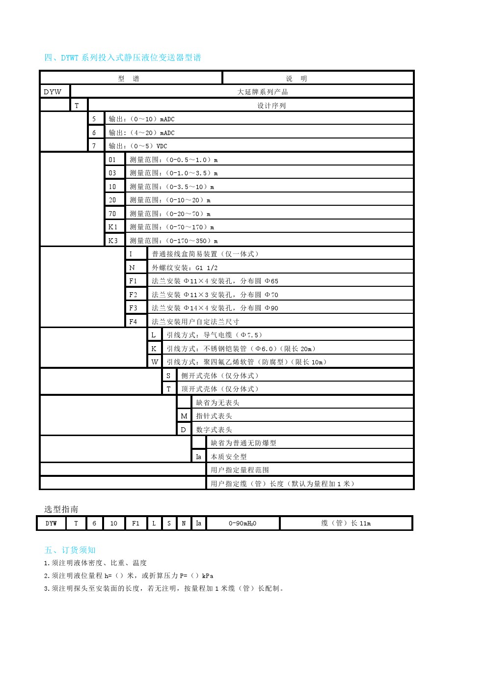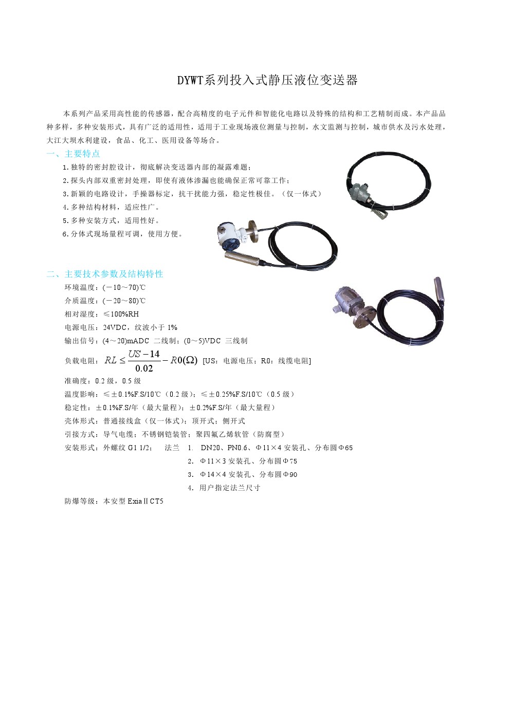 DYWT系列帶現(xiàn)場光柱顯示投入式靜壓液位變送器