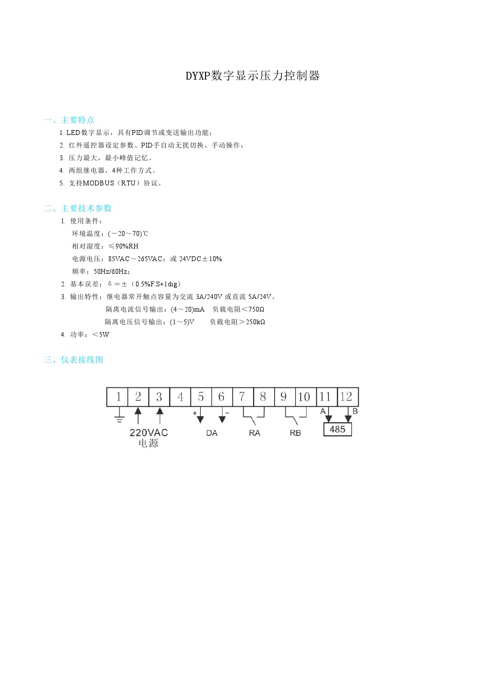 DYXP數字顯示壓力控制器