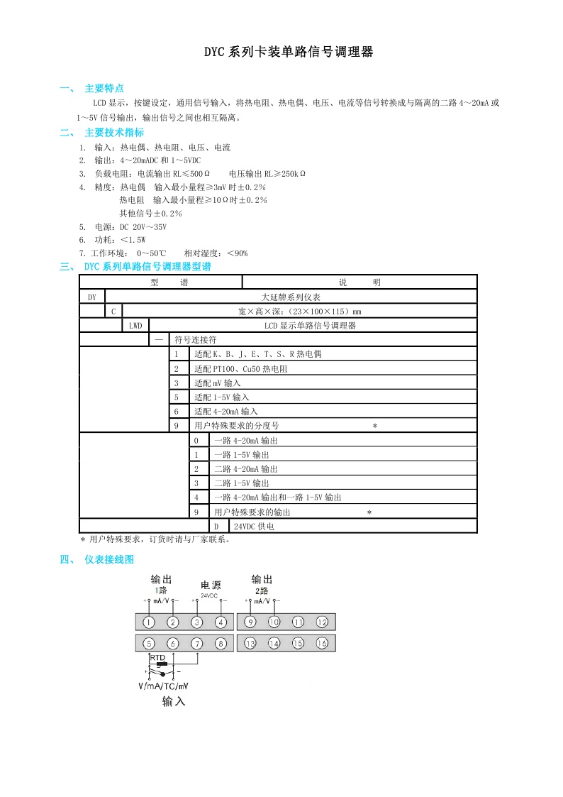 DYC系列卡裝雙路信號(hào)調(diào)理器