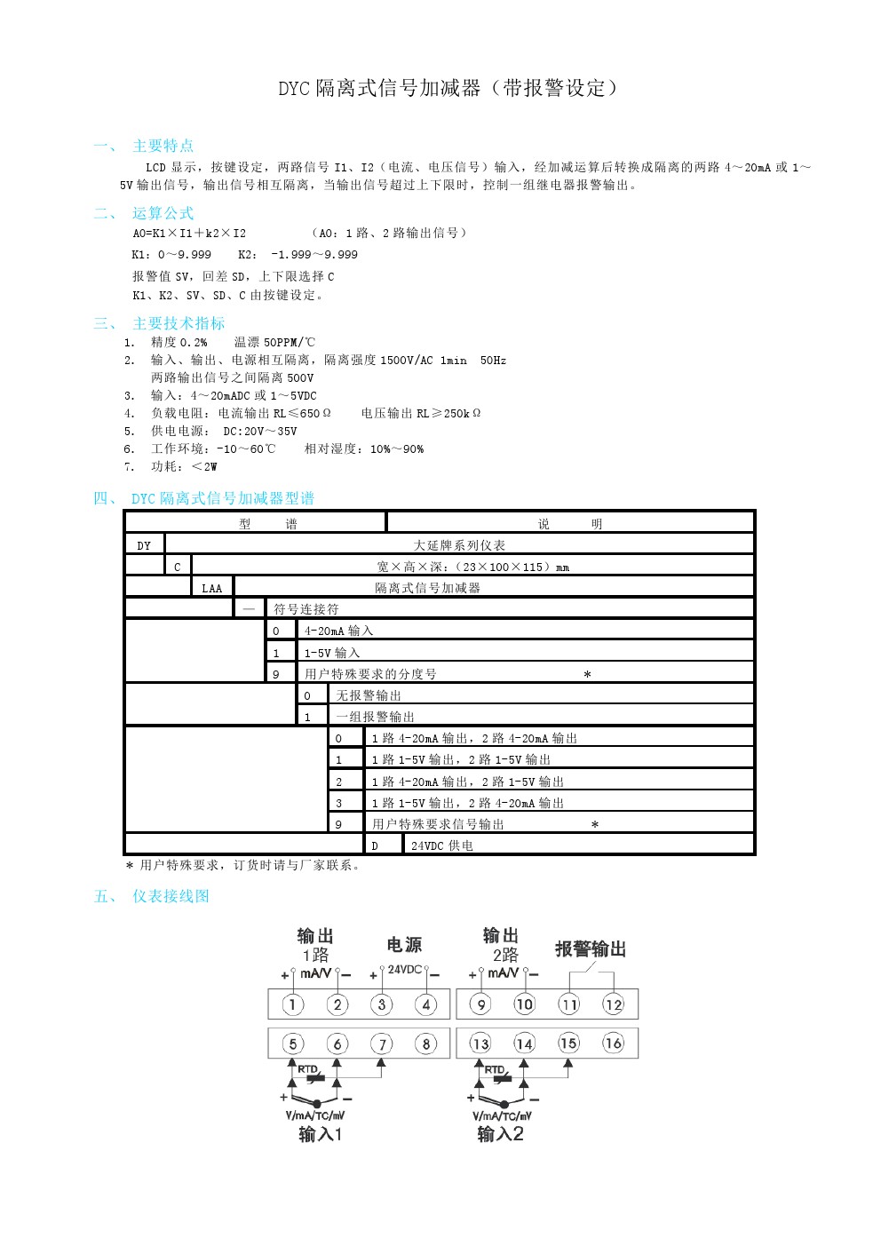 DYC隔離式信號加減器(帶報警設(shè)定)