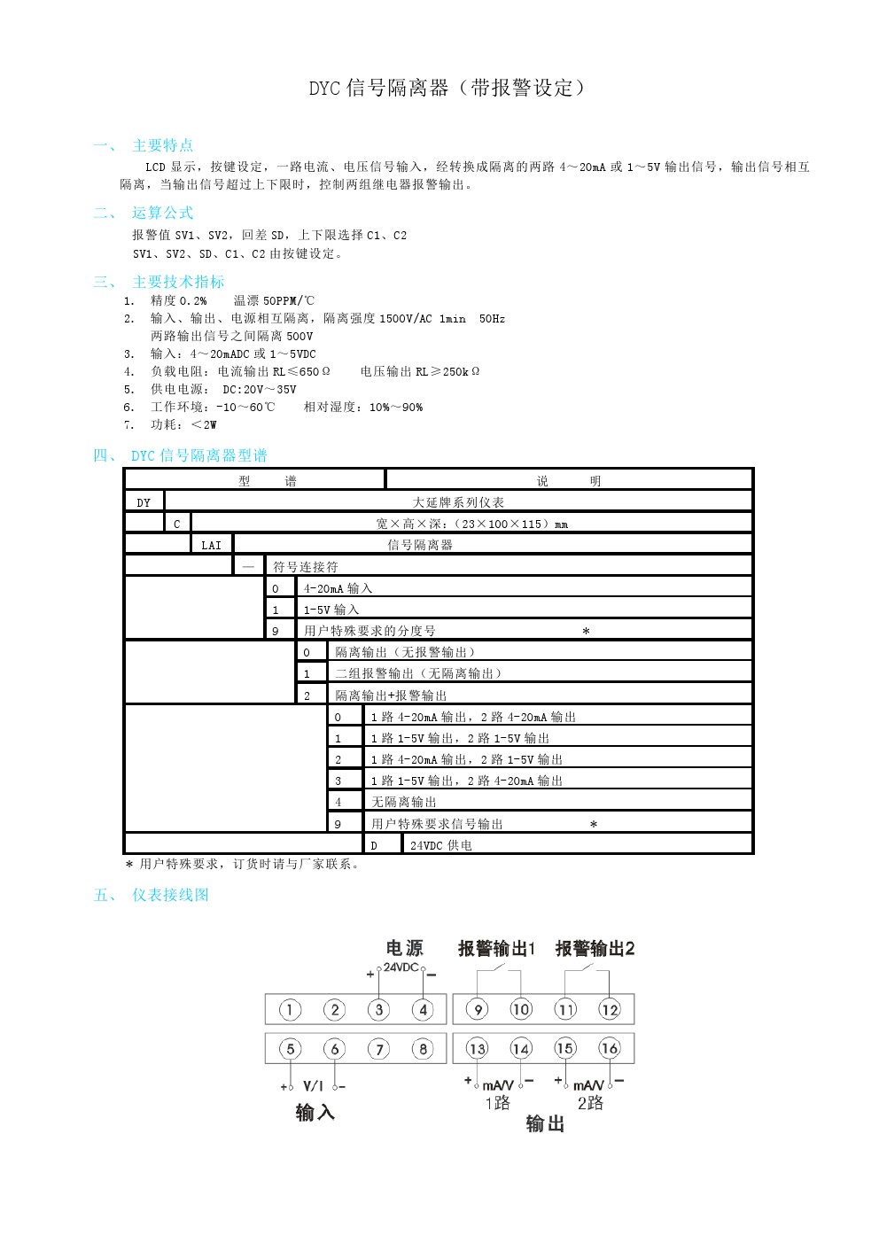 DYC信號隔離器(帶報警設定)