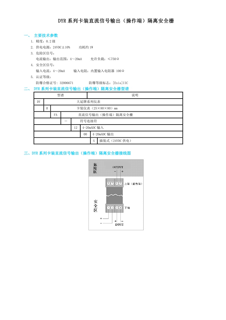 DYR系列卡裝直流信號輸入(檢測端)隔離安全柵