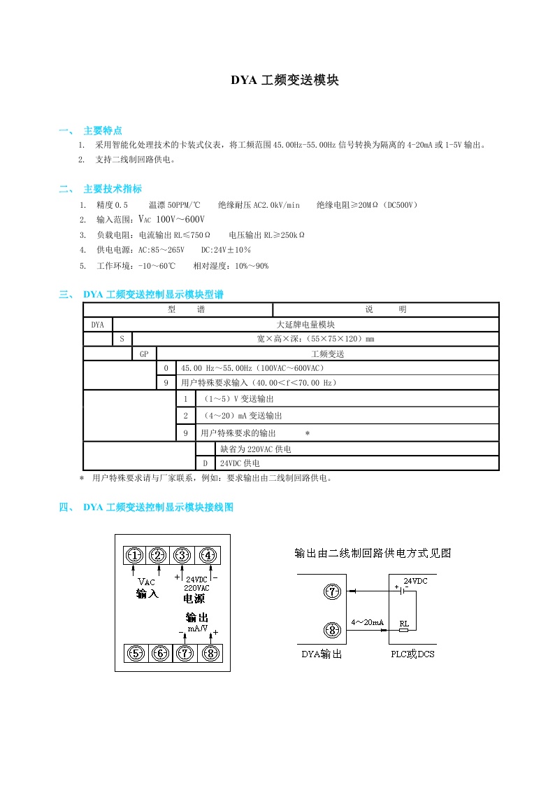 DYA工頻變送模塊