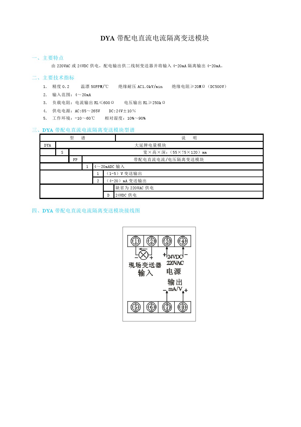 DYA帶配電直流電流隔離變送模塊
