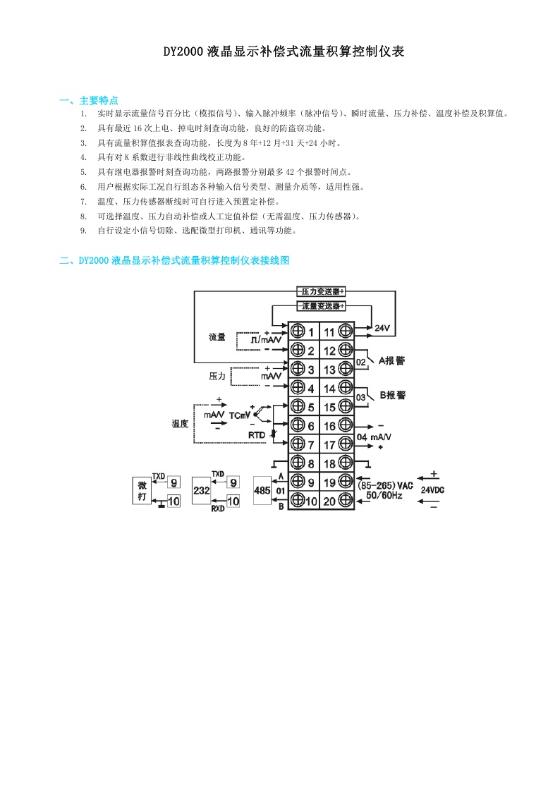 DY2000(LL)液晶顯示補償式流量積算控制儀表