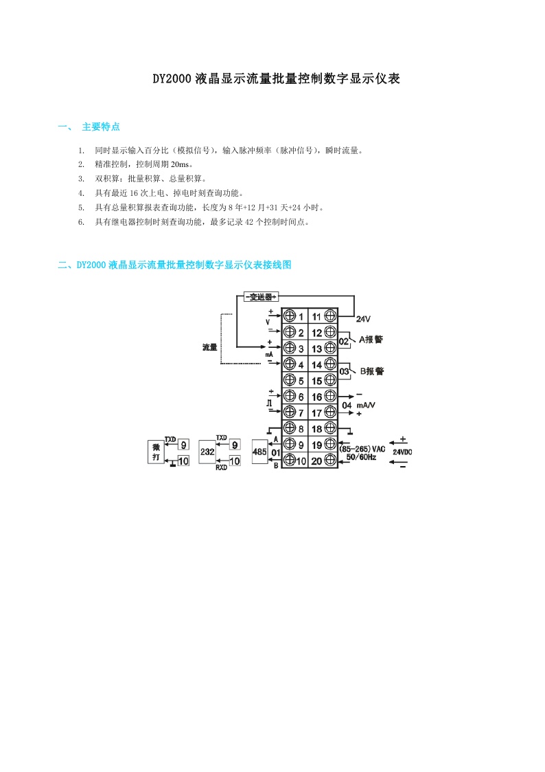 DY2000(HL)液晶顯示流量批量控制數字顯示儀表
