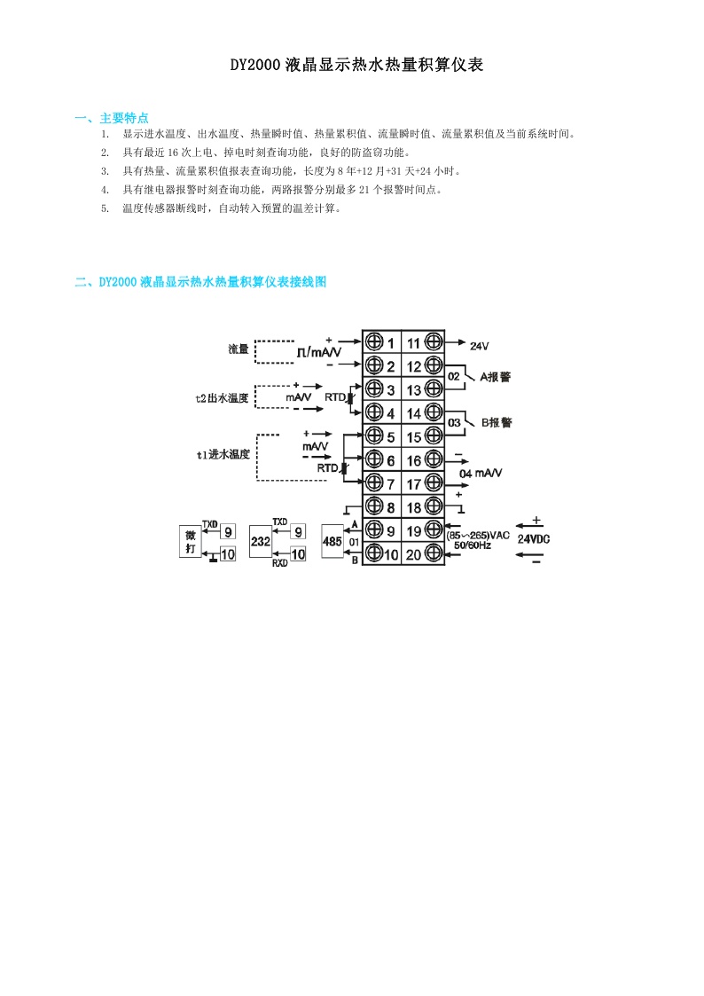 DY2000(WL)液晶顯示熱水熱量積算儀表