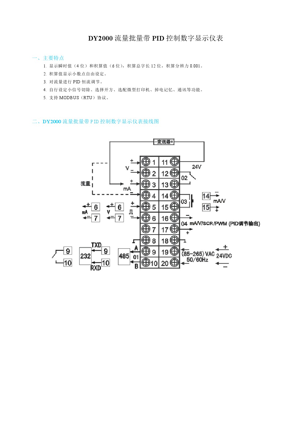 DY2000(AJ)流量積算帶PID調節控制數字顯示儀表
