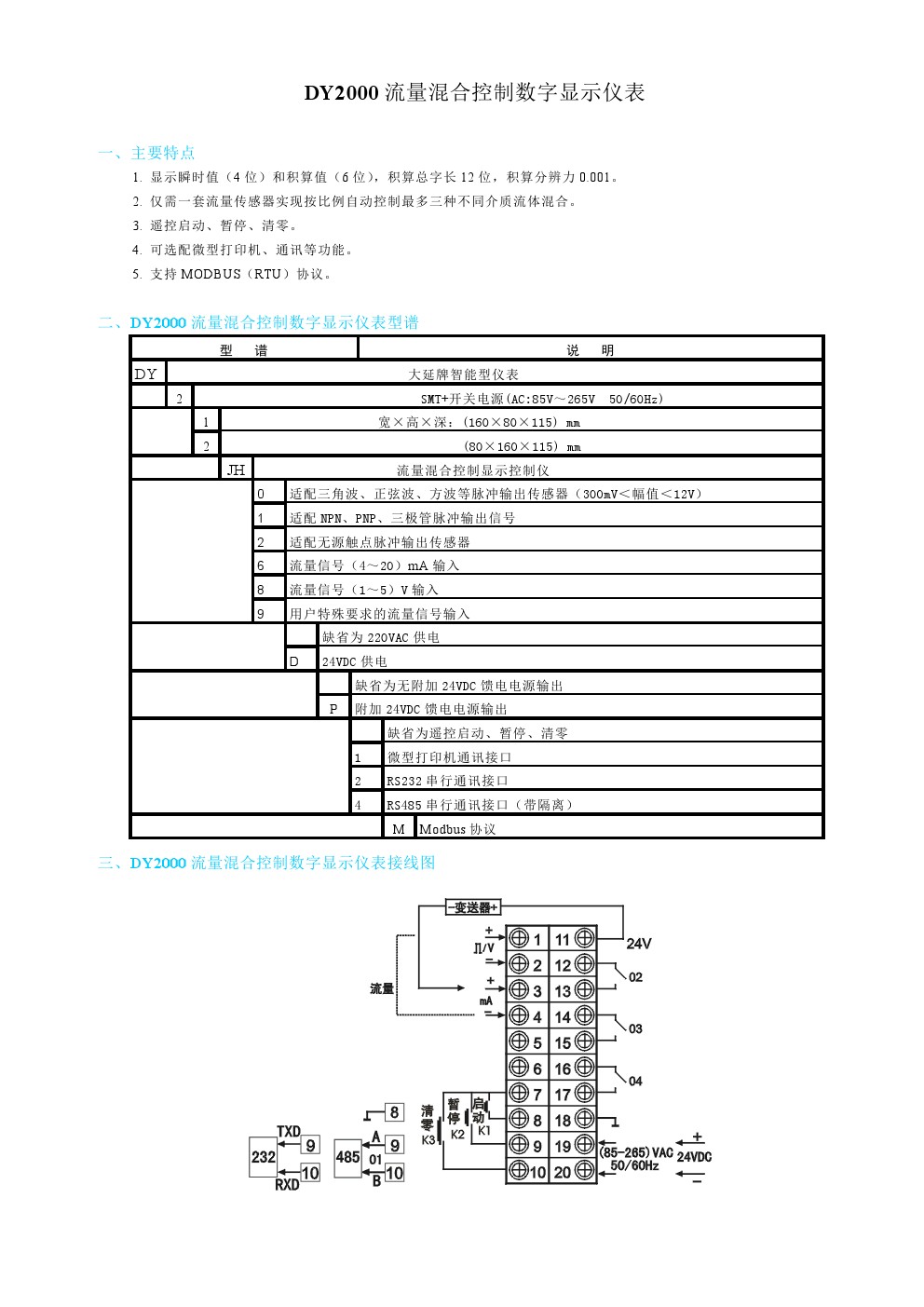 DY2000流量積算儀表
