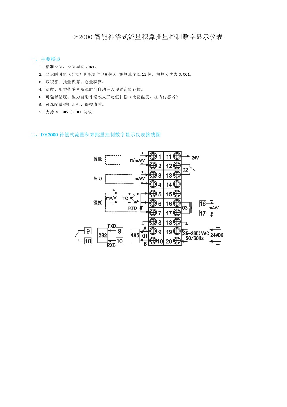 DY2000(LH)補償式流量積算批量控制數字顯示儀表