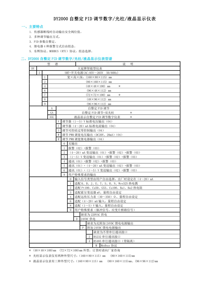 DY2000(A)自整定PID調節數字/光柱/液晶顯示儀表
