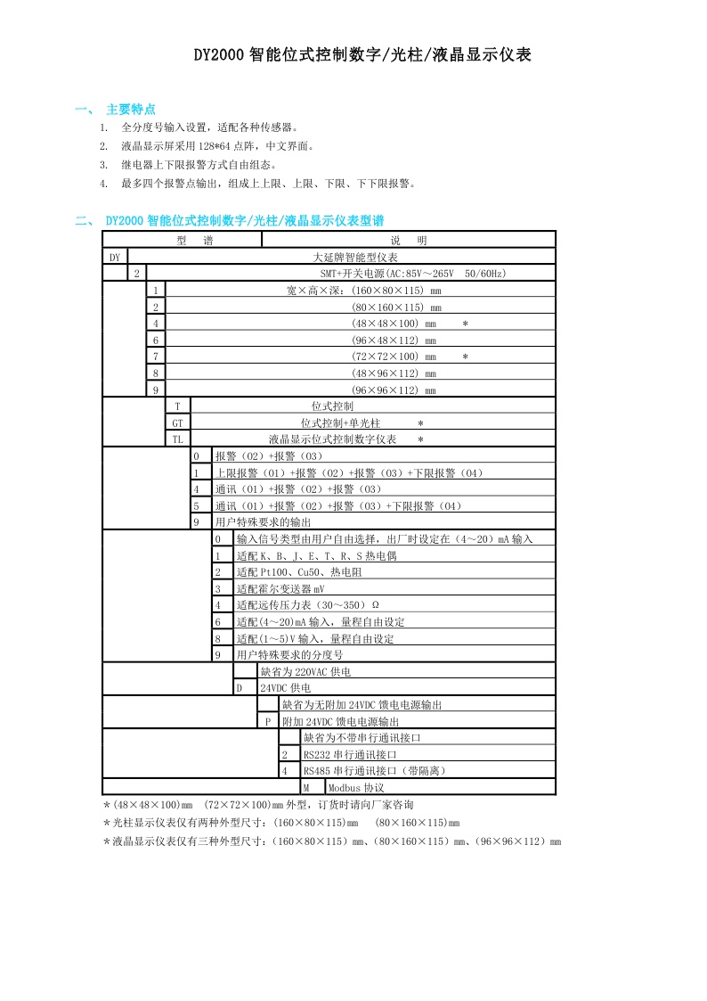 DY2000(T)智能位式控制數字/光柱/液晶顯示儀表