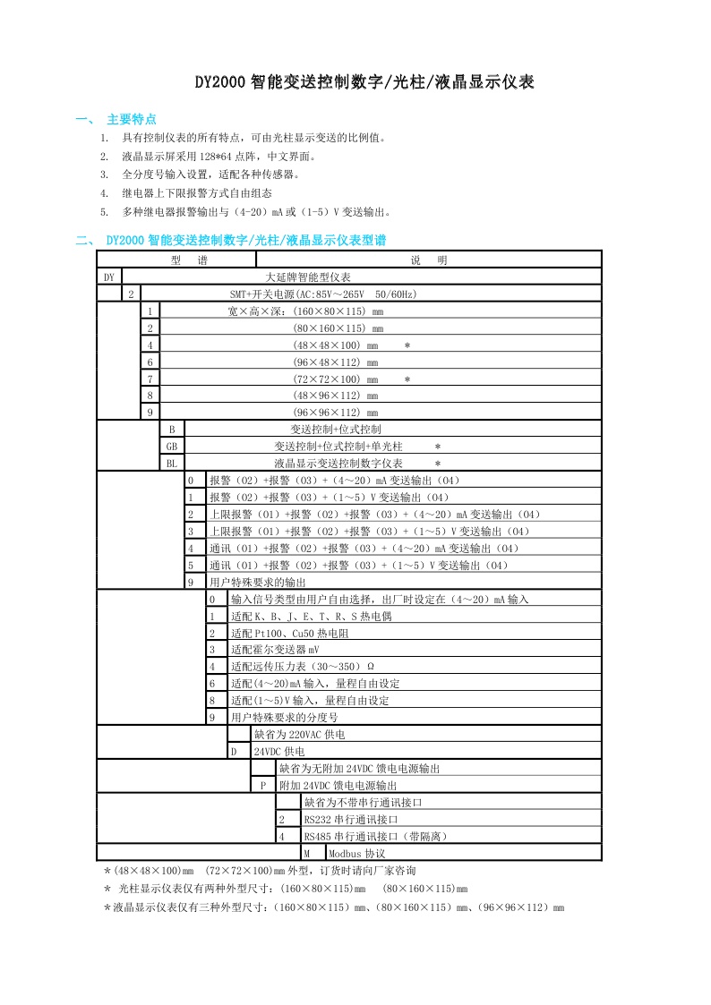 DY2000(T)智能位式控制數(shù)字/光柱/液晶顯示儀表