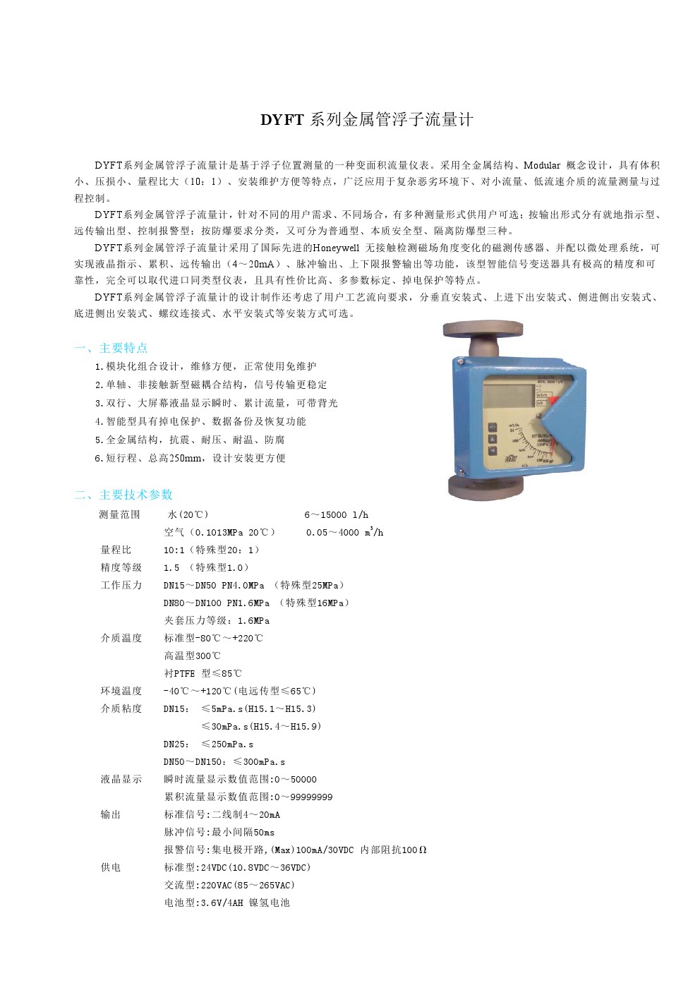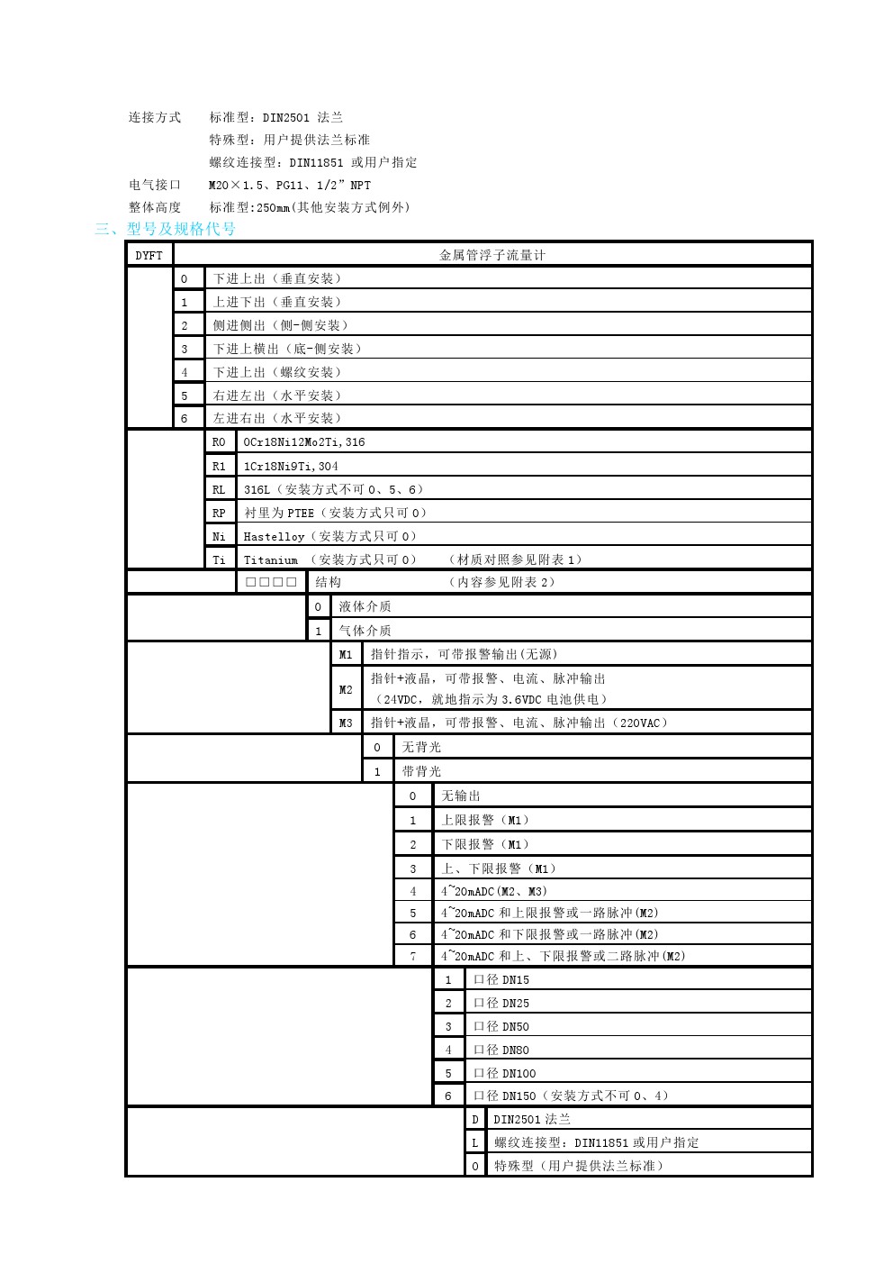 DYFT系列金屬管浮子流量計